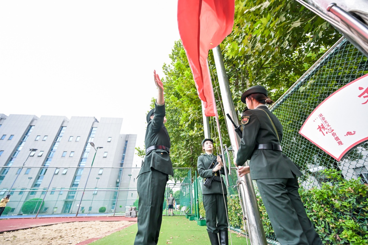 在庄严雄壮的国歌声中,五星红旗冉冉升起,2023年军训总结暨表彰大会拉开序幕。