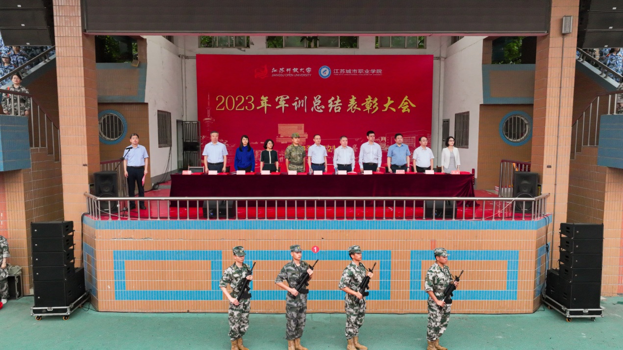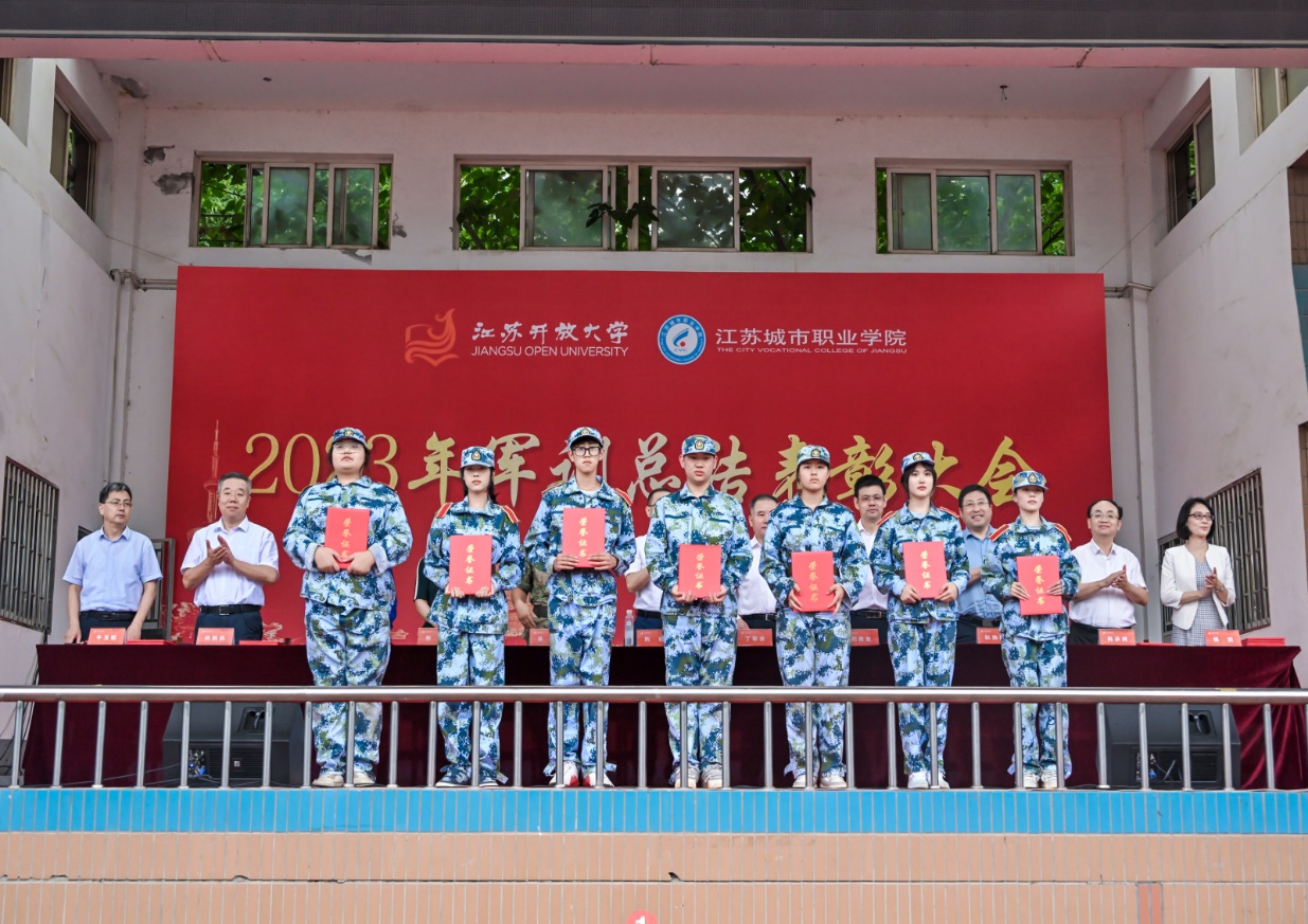 9月21日下午,我校2023年军训总结表彰大会在应天校区田径场举行。校党委书记荆晅,党委副书记、校长丁荣余等校领导出席活动,军训承训部队中国人民解放军31605部队副营长吴沧应邀出席,总结表彰大会由校党委副书记牛玉韬主持,学校各部门党政负责人、全体承训教官、各学院辅导员、2023级学生及班主任参加大会。