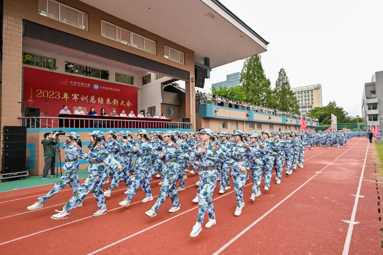 涓涓细流,汇成江海;莘莘学子,百炼成钢!军训总结表彰大会在悠扬的校歌中落下帷幕。两周的军训生活,2023级新生在烈日和秋风的洗礼下,增强了体质、磨练了意志,也激励着他们奋勇前进,把自己的理想同祖国的前途、把自己的人生同民族的命运紧密联系在一起,以青春之力铸造强国之心,做新时代的奋斗者、开拓者、冲锋者!