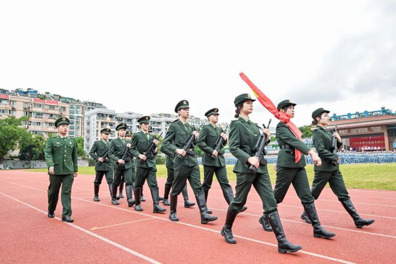 伴随教官“标兵就位”的指令,分列式正式开始,各连队新生踏着整齐划一的步伐经过主席台,展示训练成果。一列列热血而坚定的方阵,迈着整齐的步伐、挥着刚劲有力的手臂,洋溢着青春的生机,充分展现了江城学子们朝气蓬勃、奋发向上的精神风貌。他们“请党放心,强国有我”的铮铮誓言响彻云霄。