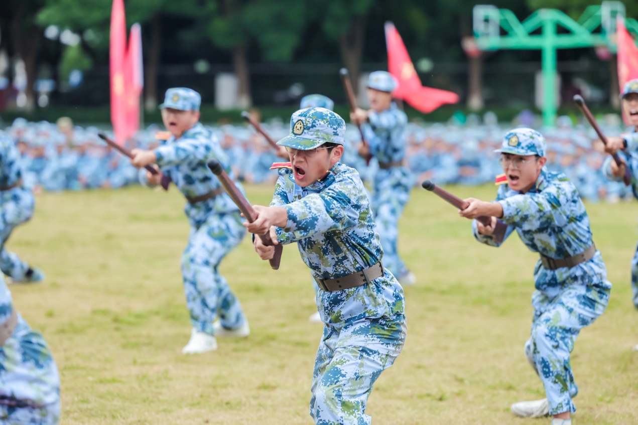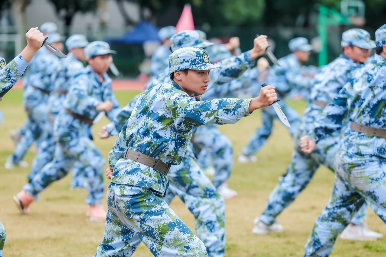 军事技能训练成果汇报中,参训学生依次汇报了军体拳、匕首操、刺杀操三个训练科目。军体拳铿锵有力,匕首操刀刀带风,刺杀操血性胆气,嘹亮的口号声响彻了整个操场,一招一式都展现着学子们坚韧不拔、勇敢顽强的战斗作风,展示了同学们在军训期间的累累硕果,赢得了全场的掌声与喝彩。